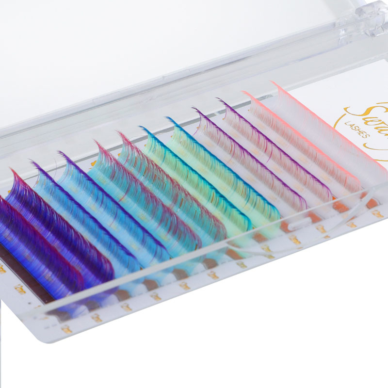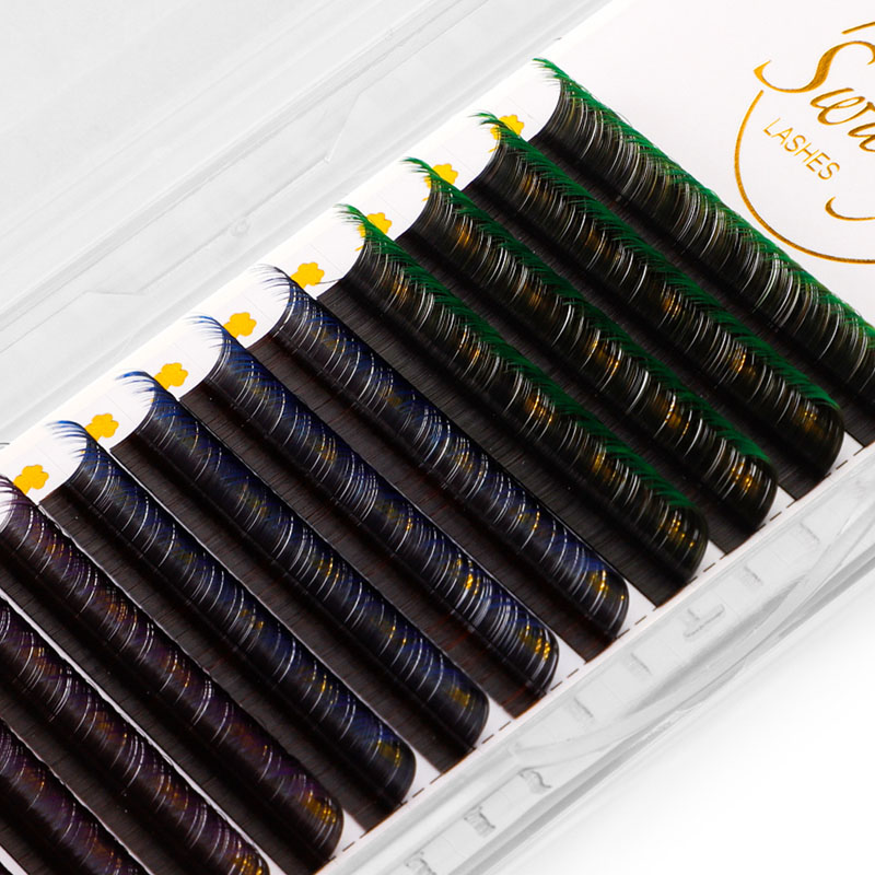 „Swaniya“ spalvingi blakstienų pratęsimai turi ombre spalvą (ombre mėlyna, ombre violetinė, balta rožinė ombre ir kt.), Normali spalva (raudona, rožinė, geltona, balta, žalia, mėlyna, violetinė ir tt), neoninė spalva.